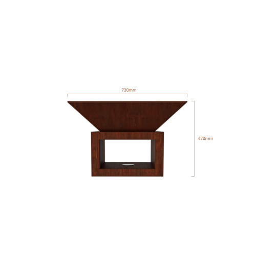Díky unikátnímu kónickému tvaru a systému přisávání vzduchu hoří dřevo ve Vulcanusu čistě a efektivně. Robustní podstavec z materiálu CORTEN nevyžaduje žádnou údržbu a může stát venku po celý rok, bez ohledu na déšť či sníh.