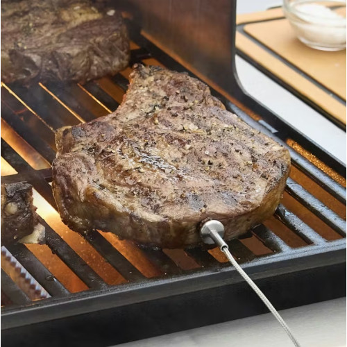 Zapomeňte na neustálé odbíhání ke grilu. Integrovaný digitální teploměr s Wi-Fi® a aplikací Weber Connect® vám umožní vzdálené monitorování přímo na vašem smartphonu. Systém vás upozorní, kdy je gril rozpálený, kdy je čas maso obrátit a kdy je přesně v ten moment, kdy ho máte servírovat. Součástí balení je jedna kabelová jehla na měření vnitřní teploty pokrmu.