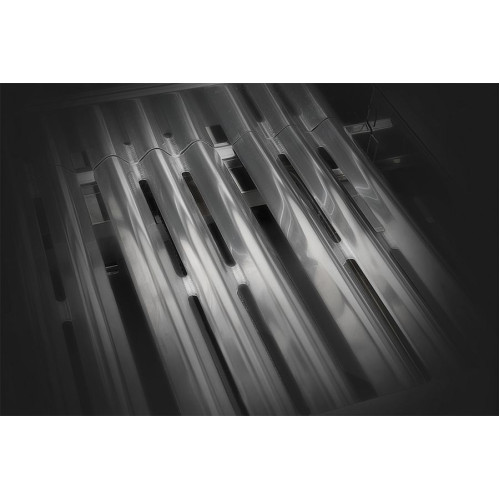 • 3 nerezové hlavní hořáky: Zajišťují vysoký výkon (14,8 kW) a rovnoměrnou distribuci tepla po celé grilovací ploše. Hořáky jsou chráněny nerezovými kryty, které odpařují šťávy zpět k pokrmu a chrání trysky před znečištěním.