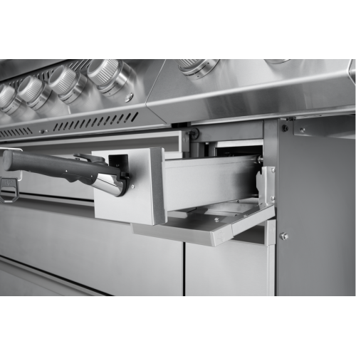 Robustní, kovové a podsvícené knoflíky jsou navrženy s maximální pečlivostí do detailu. Nabízejí precizní ovládání teploty a funkcí grilu, odolávají dlouhodobému používání a díky podsvícení umožňují pohodlné nastavení i za soumraku nebo večerního grilování. Perfektní kombinace komfortu, preciznosti a prémiového zpracování.