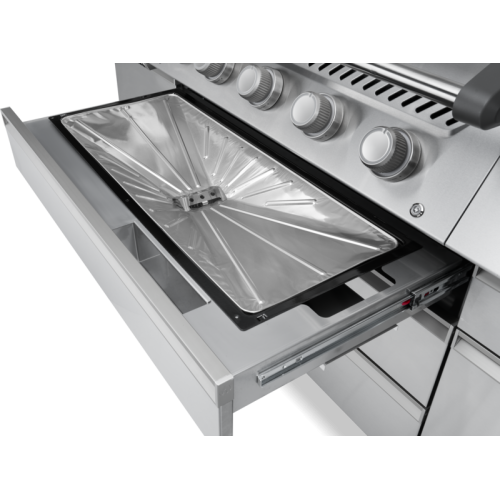 Efektivní odvod tuku - Gril Napoleon Prestige Pro WiFi je navržen tak, aby přebytečný tuk a šťávy z grilování byly bezpečně odváděny do odkapové misky. Přes konickou nádobu pod grilovací vanou je tuk směrován do samostatné misky.