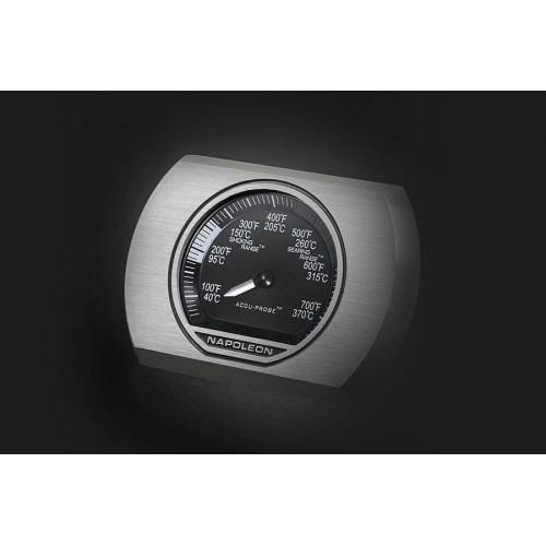 - Vestavěný teploměr ACCU-PROBE™: Ve víku grilu je zabudovaný teploměr, pomocí kterého snadno uhlídáte ideální teplotu toho, co zrovna grilujete