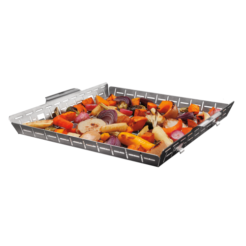Dokonalá zelenina a drobné delikatesy bez rizika propadnutí - s grilovacím košem Weber CRAFTED posunete přípravu příloh na novou úroveň. Díky konstrukci s jemnými otvory dochází k ideální cirkulaci horkého vzduchu, což pokrmům dodává nezaměnitelnou kouřovou chuť, aniž byste se museli bát, že kousky cukety nebo krevety skončí v útrobách grilu.